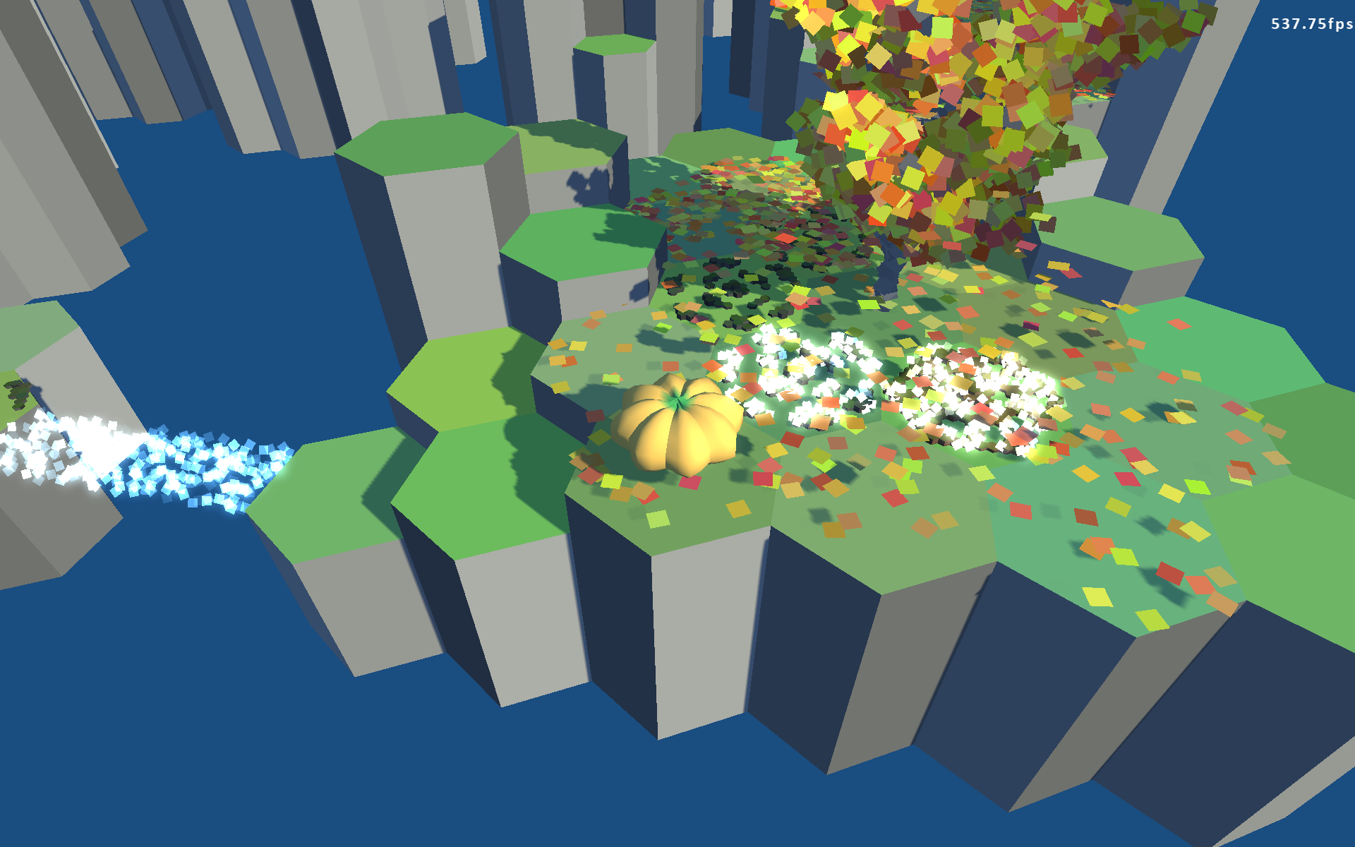 Wieder eine eigene Engine mit ein bissl HDR und komplett im Code generierter Grafik. C++98 bis 20 mit meinem Framework und damit immer noch DX9. Die Blätter und Partikel sind CPU-Simulation, mit DX9 kann ich die nicht sinnvoll auf die GPU auslagern, aber dafür kann man schnell mal reindebuggen oder mit VisualStudios Edit&Continue Zahlen anpassen, bis es gut aussieht.