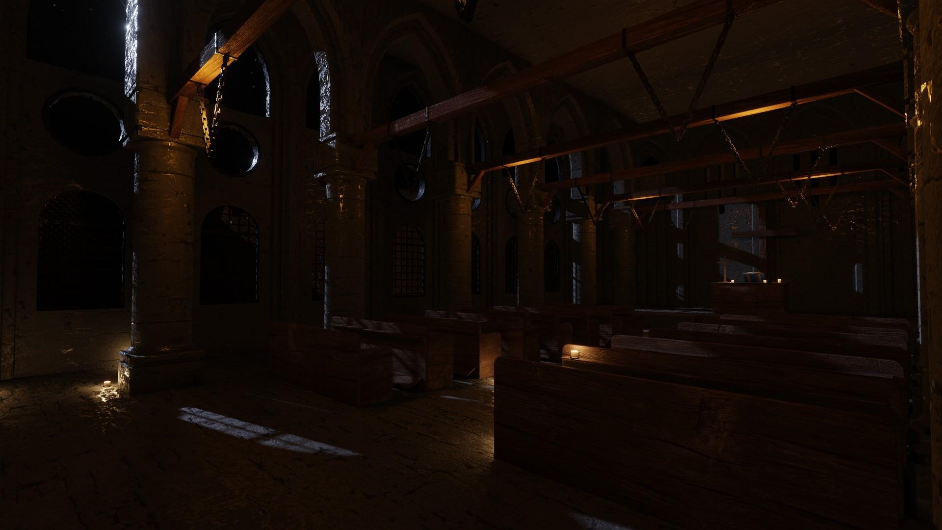 Der Blick in die Kirche gefällt mir schon mal sehr gut. Kommt schon Gruselambiente auf. Hat sich seit dem Stand des Wettbewerbs ordentlich was getan.
