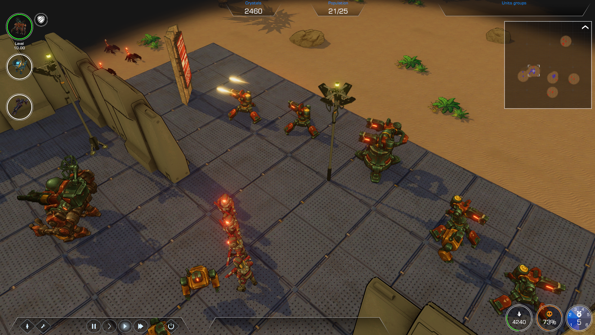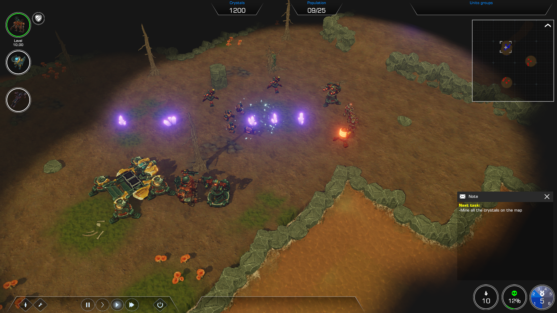 Ja was ich definitiv noch anpassen muss ist das die Gebäude besser gepanzert sind als die Einheiten. Aktuell macht es wie du bemerkt hast garkeinen sinn Gebäude zu bauen da die zu schnell kaput gehen (vor allem im Verhältnis zu den Einheiten) es wird auch später noch andere Missionen geben nit anderen Zielen. Zum Beispiel die 3 Mission (wenn man das tutorial nicht mit zählt) dort muss man lange genug in der fabril durchhalten (das kristalle sammeln entfällt dort) oder der Anschluss mission muss man weder eine basis bauen noch kristalle sammeln. Später in der Vollversion gibt es dann auch klassische missionen wie in sc2, also armee aufbauen und den Gegner besiegen. (Die gleichen wie in der letzten mission der demo)