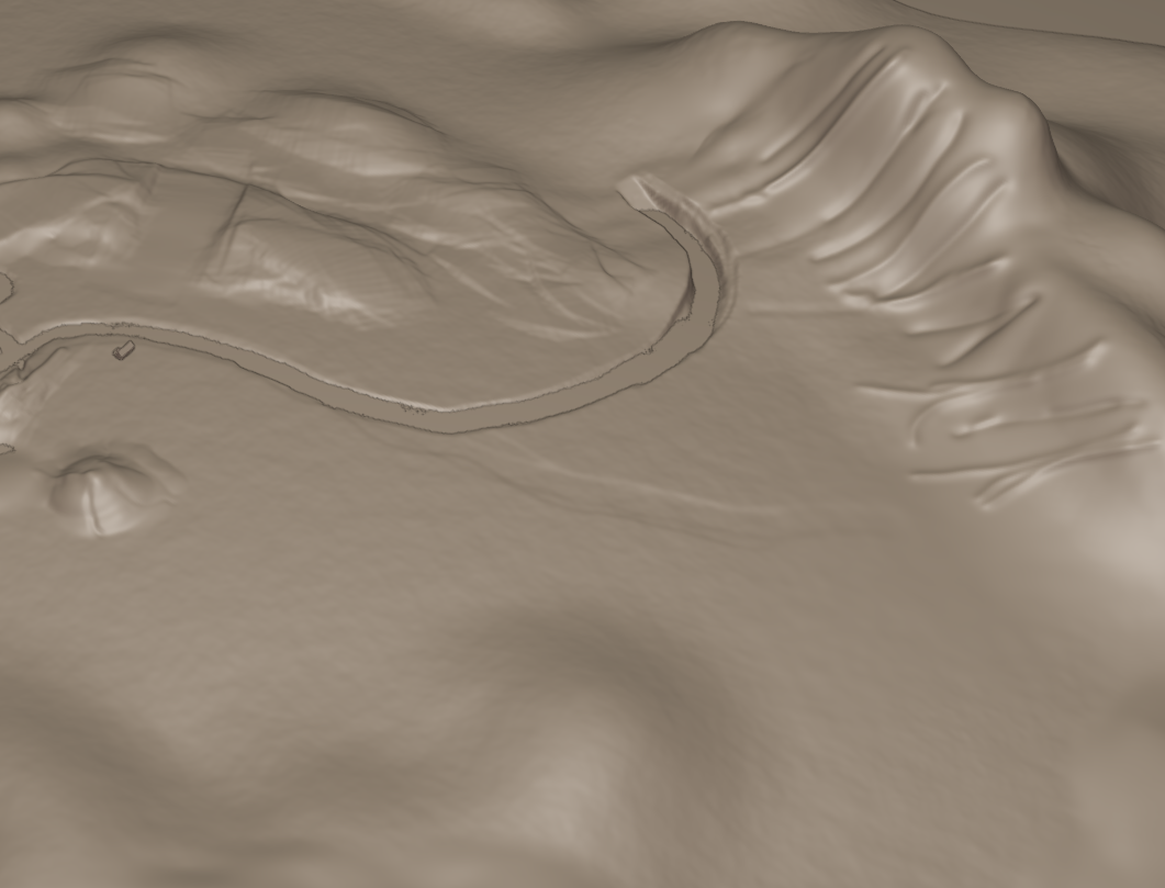 Das Geröll glättet die Hänge etwas, das funktioniert bloß leider nur gut an den steilen / großen Bergen. Die Hügel sind immer noch zu faltig.