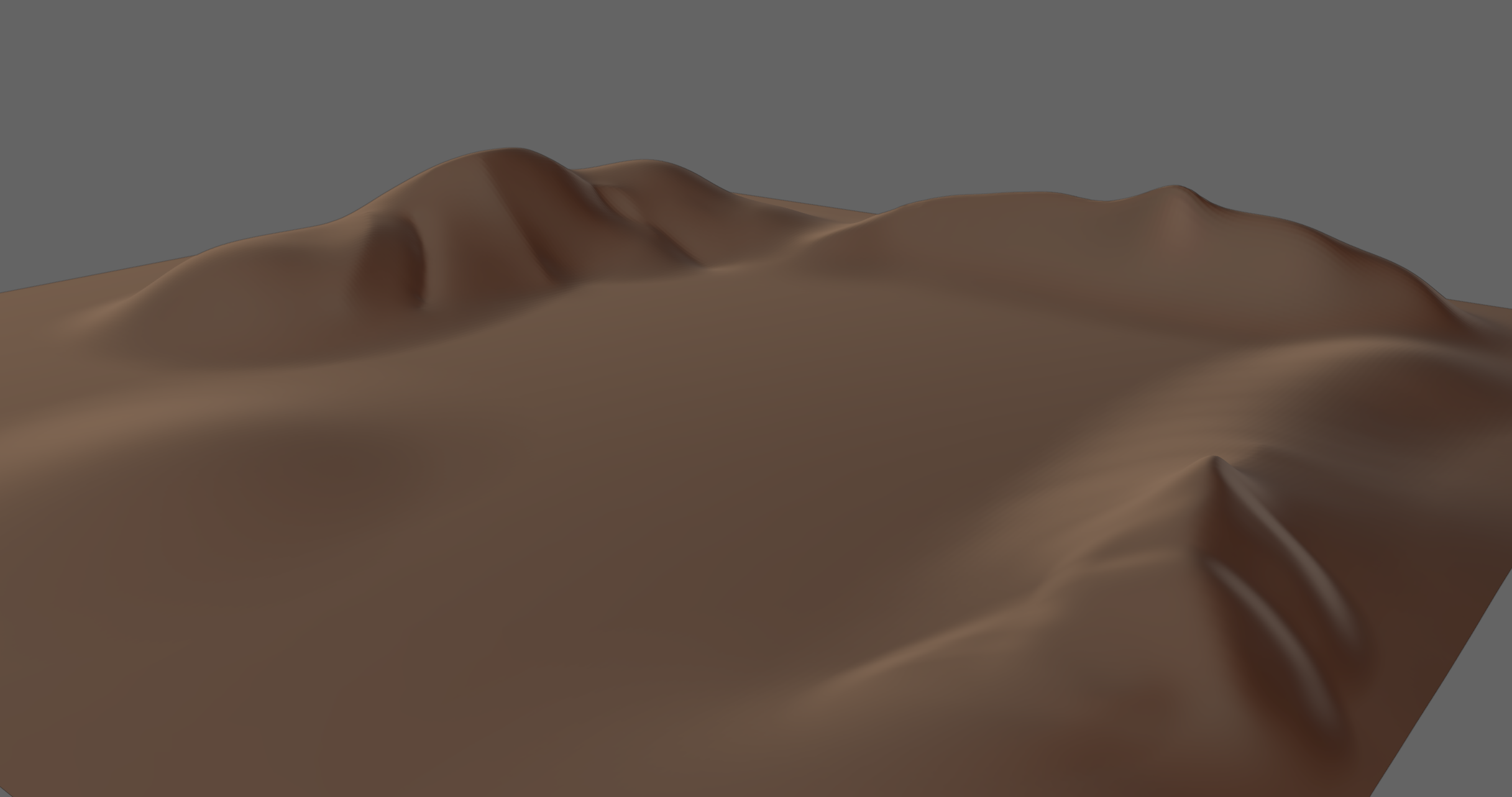 Das jetzt nur mal ein schneller Test, mit ein bisschen mehr Arbeit kann man sicherlich für die verschiedenen Höhenstufen noch viel bessere Displacement-Texturen generieren. Insgesamt bin ich aber schon ziemlich zufrieden, wenn man bedenkt wie schnell die grobe Position der Berge im Knet-Modus hingepinselt war. Und ehrlich gesagt gefällt mir das Ergebnis jetzt schon besser als dieses durselige Erosion-Addon, bei dem jede Landschaft aussieht wie meine ungefaltete Bettdecke...