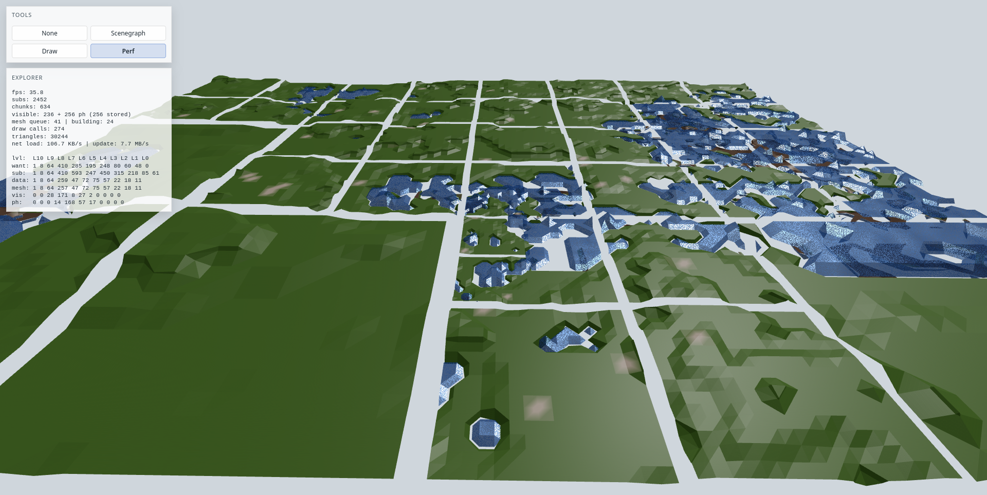 Schrompf hat geschrieben: 30.01.2026, 11:39 Hm? Ich seh's nicht. Wenn die weißen Linien Block-Ränder sein sollen, dann verkackt Deine LOD-Berechnung doch sichtbar? Am Rand weiter höchste Auflösung als in der Mitte? Müsste uniform sein, oder sogar andersrum.