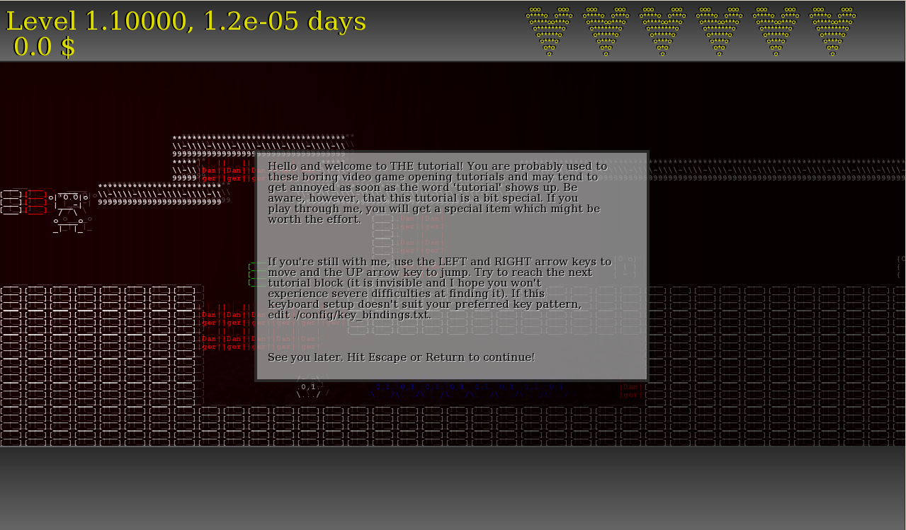Ein paar kosmetische Fixes sowie eine zusaetzliche Mauer im Tutoriallevel ( :-) ). Kurz: neu runterladen lohnt sich fuer Windows’ler nicht. Neu ist hingegen die experimentelle Linux-Unterstuetzung. Aktuell noch eher unkomfortabel, bitte den Build-Anweisungen im INSTALL-File folgen und bei Problemen Bescheid geben.