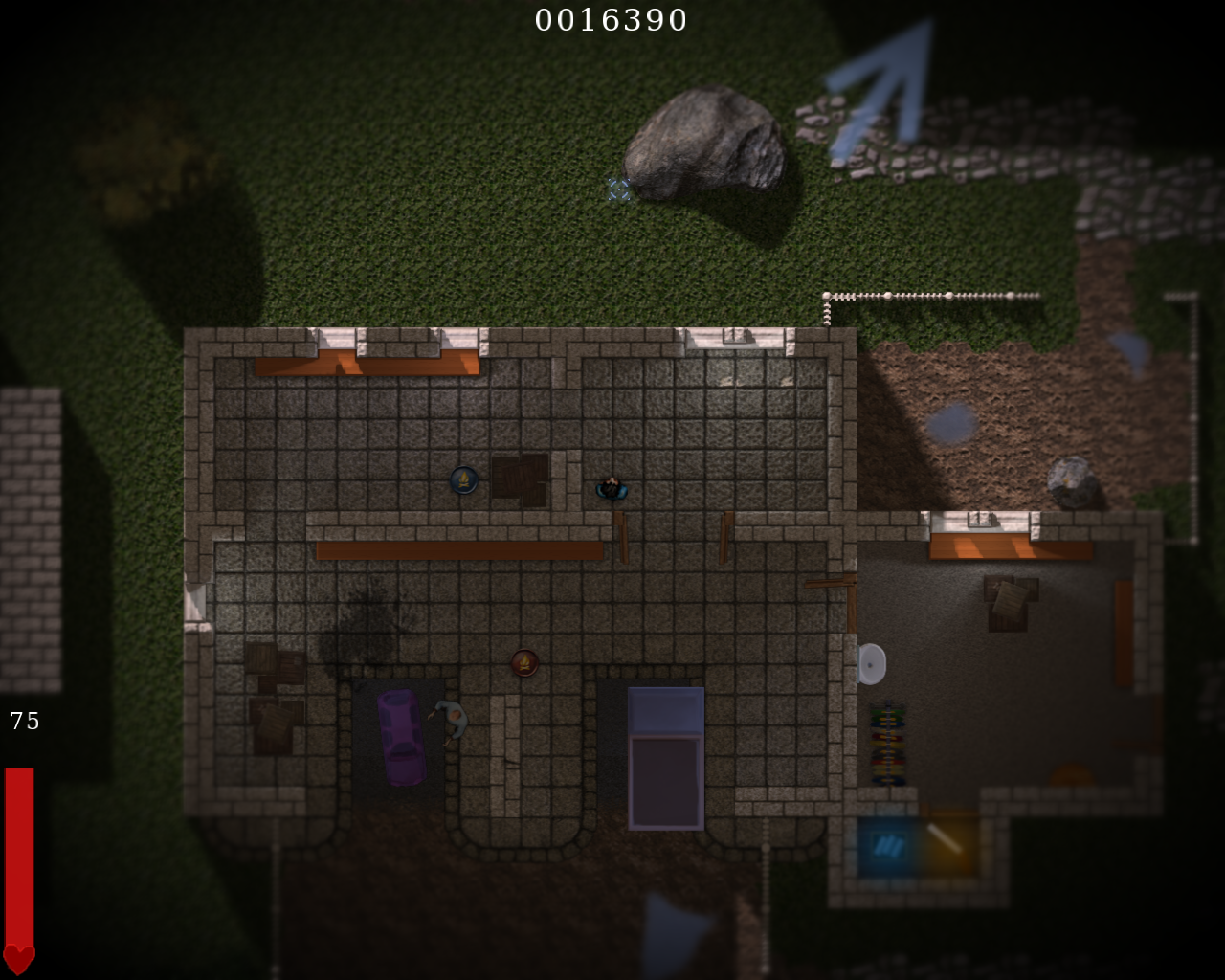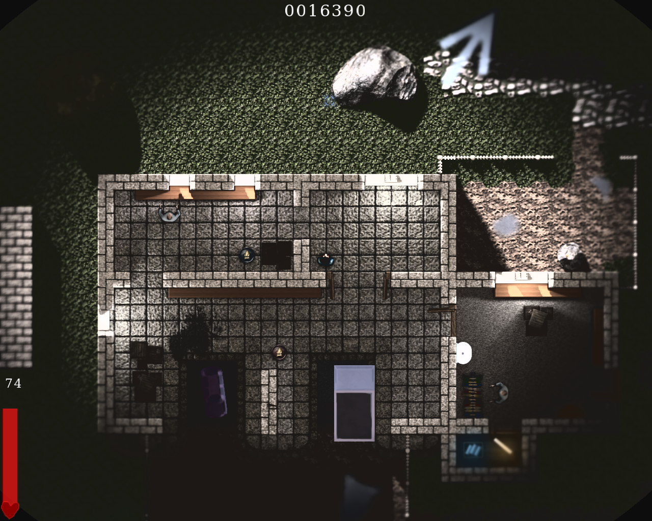 - Ich habe ein bisschen an der Beleuchtung rumgespielt - z.B. kann die Sonne jetzt aus Innenräumen rausgehalten werden, und x weitere Detailänderungen an Licht und Schatten. Dafür habe ich kleine Lichtquellen mit extra diffusem Schatten an alle Türen und Fenster gesetzt, um ein wenig indirektes Licht zu simulieren. Und das sieht echt gut aus, finde ich. Hier ein Beispiel: