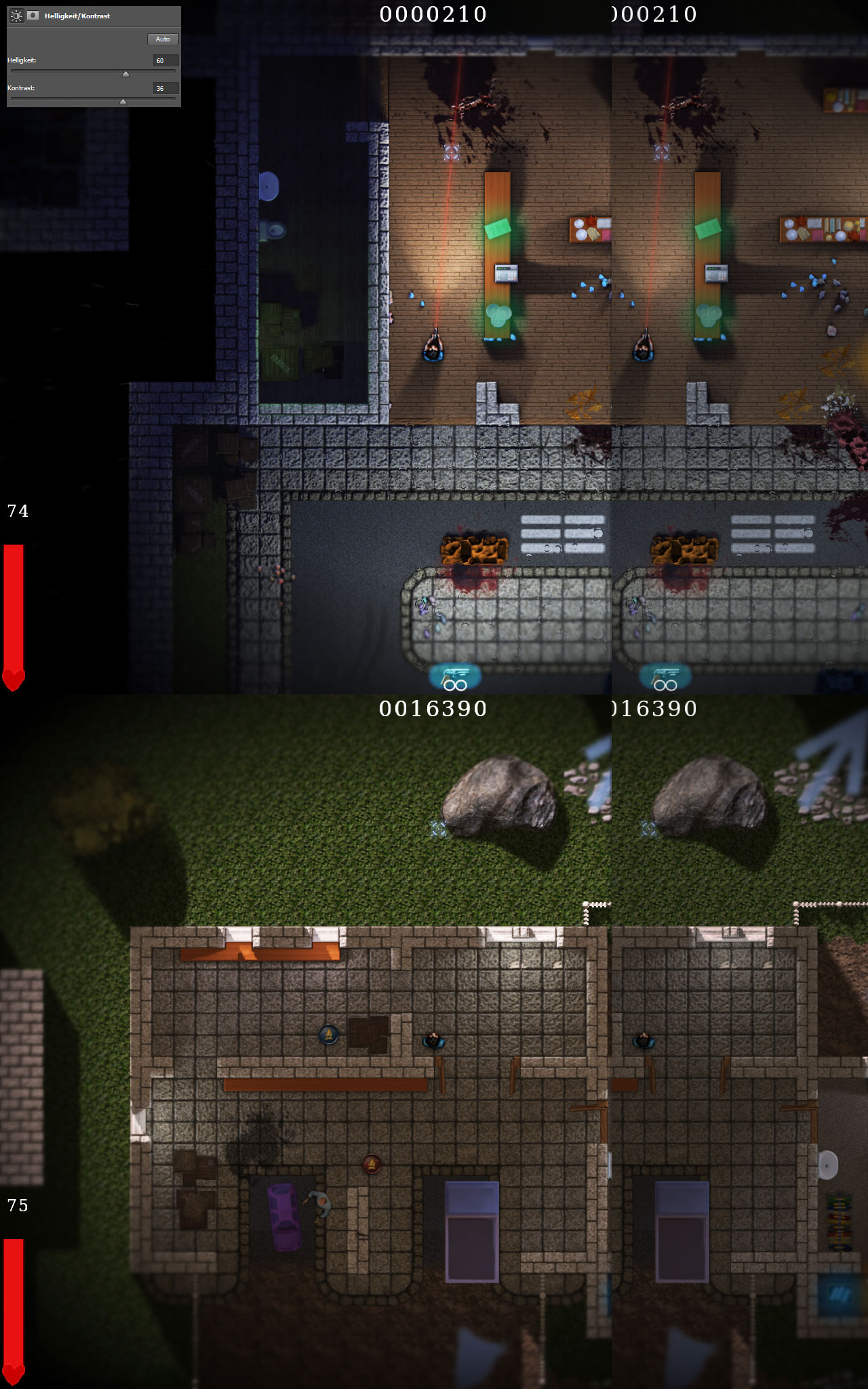 Ok, danke für die Hinweise. Das ursprüngliche Ziel war hier eigentlich *nicht*, realistisch zu wirken, sondern es sollte eine Stilanpassung werden, dass die InGame-Optik eher zu den sonstigen Elementen passt. Aber da die Spielbarkeit oberste Priorität hat und die Effekte in der Tat die Erkennbarkeit von Spielelementen versauen, werde ich wohl die PostFX-Experimente wohl erstmal wieder seinlassen.
