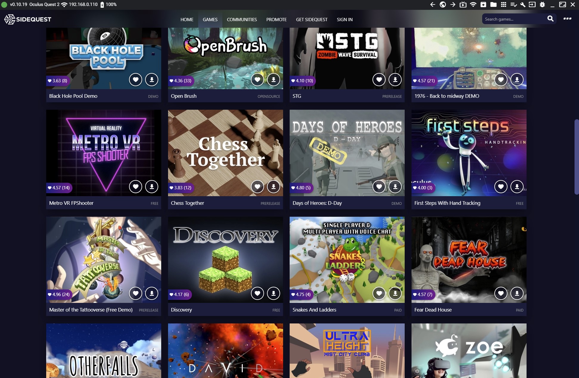 Ich sehe aber auch, dass die Spiele, die statt auf itch, über den offiziellen Oculus Store verfügbar sind, wesentlich besser laufen. Halt einfach weil Du dann den ganzen Developer-Mode Kram nicht brauchst und es eine 1-Click-Lösung ist.