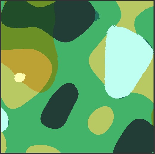 Vor ein paar Monaten hab ich mit dem Diamond-Square Fraktal experimentiert, was eine recht alte Form der Terrain Generierung ist. Anstatt den Durchschnitt zu errechnen, führe ich allerdings zellulare Automaten Regeln aus, was recht interessante Strukturen geniert.