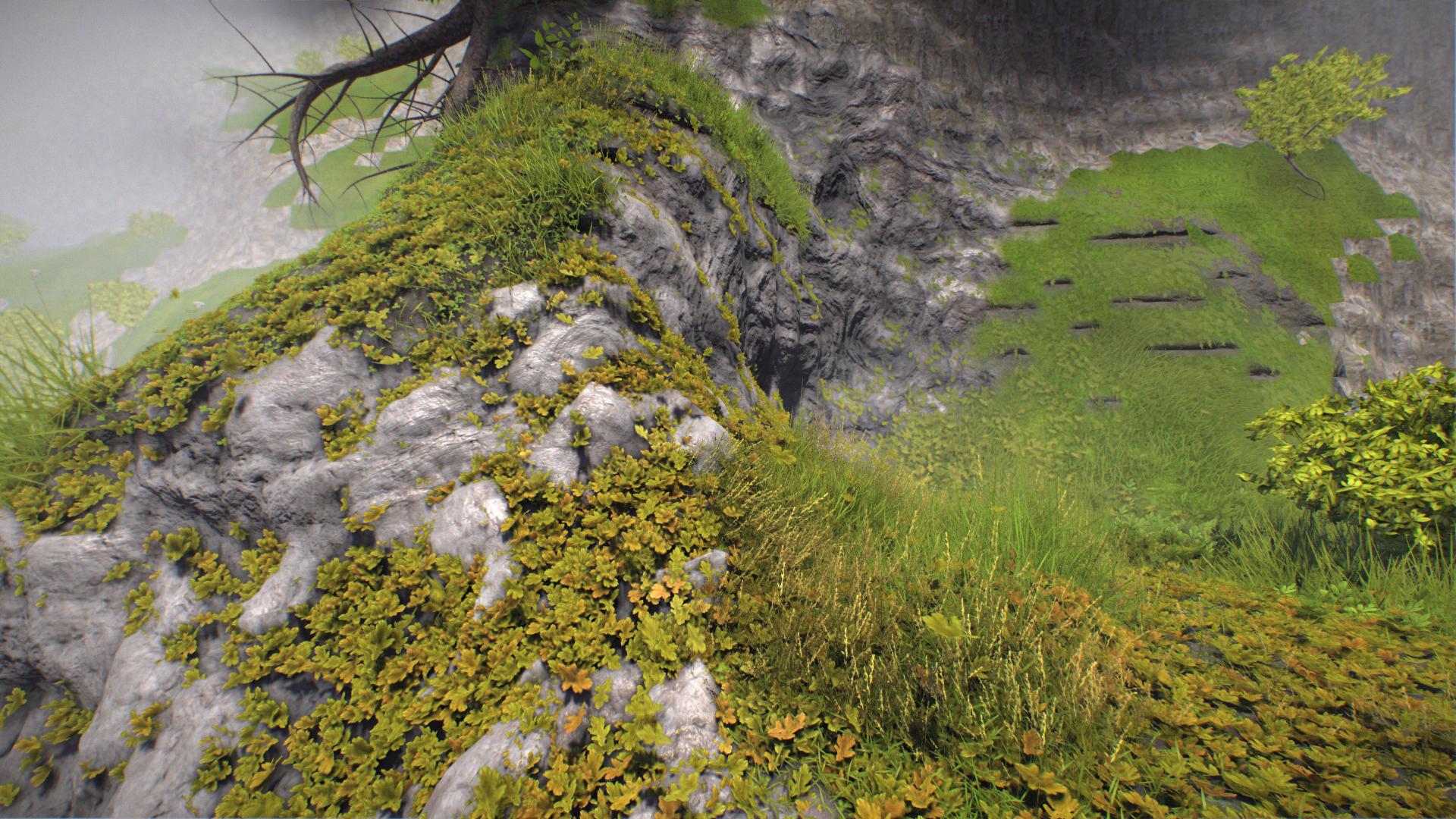 Und nochmal ein paar Bilderchen... in den Blättern sind nun Farbvariationen mit drin. Außerdem können diese nun auch auf Felsen liegen und flattern auch ein wenig in die Luft... nicht großartig... so ein Vertexshader begrenzt ja schon sehr im handeln... :D da wäre wohl ein richtiges Partikelsystem schöner, aber wer hat dafür die Resourcen übrig? :D