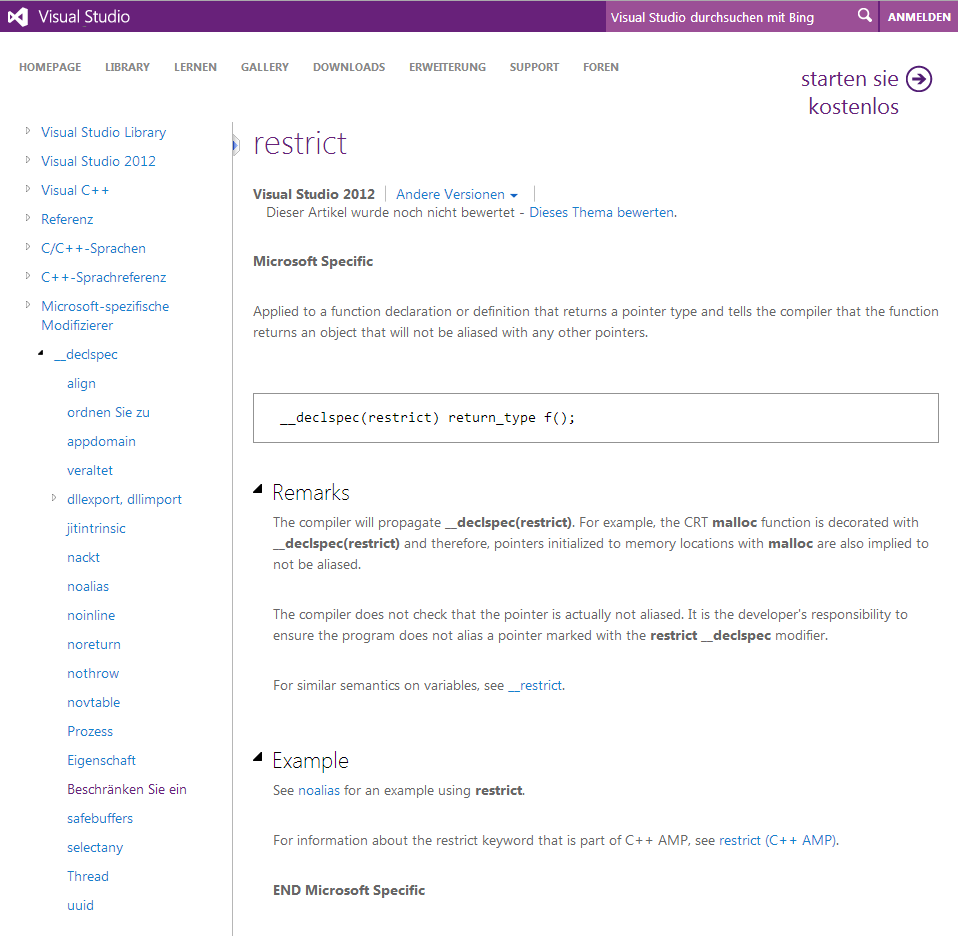 Nicht zu fassen, die deutsche MSDN übersetzt sogar Schlüsselwörter: "ordnen Sie zu", "Beschränken Sie ein", "nackt", ...