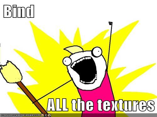 Ich kann es jedenfalls kaum erwarten, dass bindless Textures vernünftige Verbreitung haben.