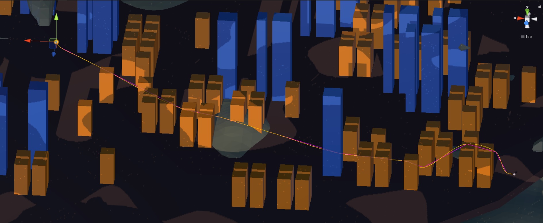 Ich hoffe, dass der SVO eine Allzweckwaffe ist. Speziell schweben mir für 1-2 Level Landschaften mit verzweigten Tunnelsystemen vor. Konkret für's erste Level mit der Stadt, und die ist ja erst sehr Draft-mässig bisher, hatte ich schon das Problem, dass der Spieler durch das Gate der Kuppel fliegen kann und die Gegner ihm dann folgen sollen. Ich werd's jetzt zunächst mal ganz naiv so implementieren, dass der Gegner bei Blickverlust in Richtung Spieler + geschätzter Offset (Flugzeit x Spielergeschw.) einen Pfad planen wird, und bei Blickkontakt auf den Angriffsmodus (auf Spieler draufhalten) zurückwechselt. Ob das dann so funktioniert? Ich werde berichten! :) Vorher geht's 1 Woche in Urlaub.