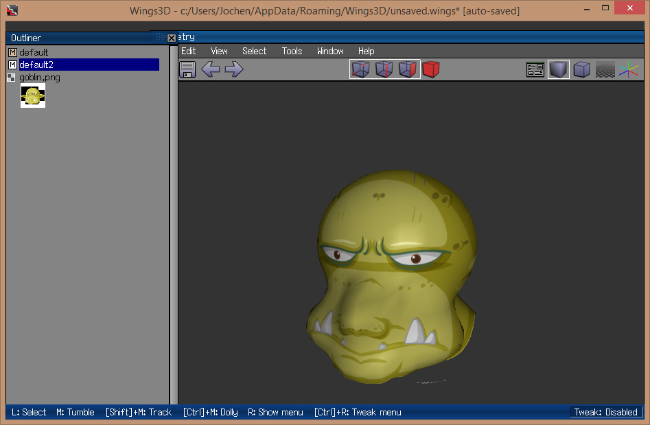 Inzwischen habe ich mal am "Facehugger"-Teil von weiter oben weitergebastelt, da ich das evtl. als Tool benötige, aktuell nicht für Games, sondern um größere (Comic-)Styroporfiguren zu bauen, bzw. die Köpfe dafür besser vorbereiten zu können (Den Goblin baue ich nicht, ist nur meine Testdatei).