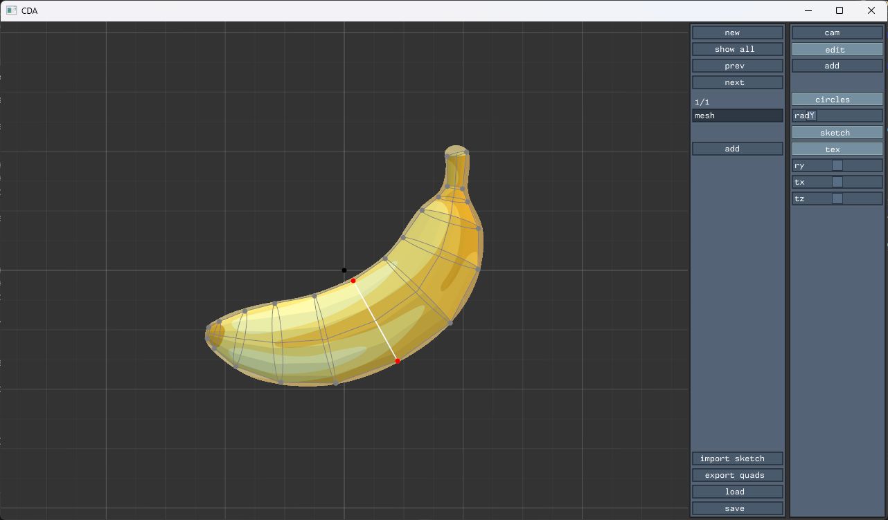 Auf der 2D-Vorlage werden Querschnitte markiert, diese werden erstmal als kreisförmig angenommen und daraus ein Mesh extrudiert.