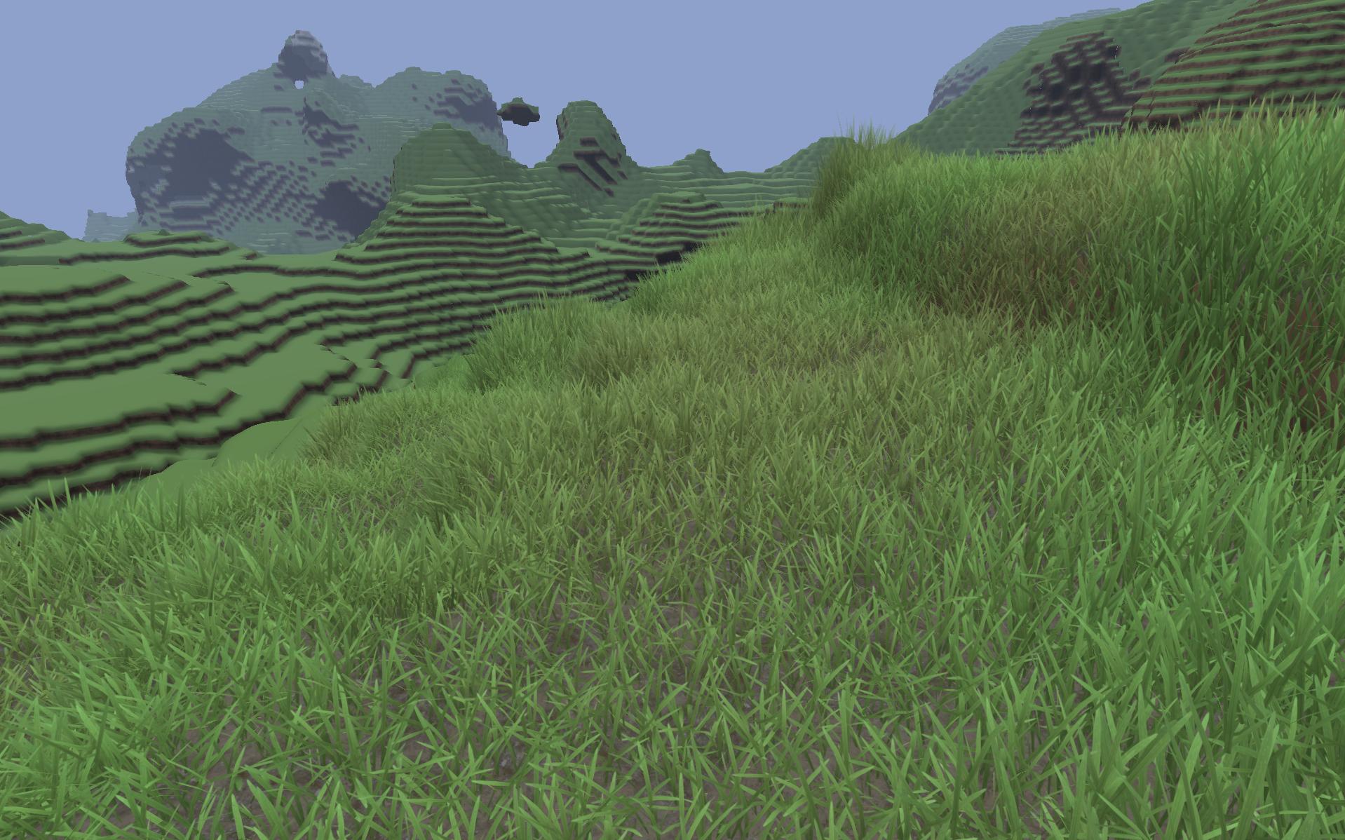 Das sieht beleuchteter aus, weil manchmal Grashalme über die anderen gerendert werden und da die an der Wurzel dunkler sind (gefaktes AO) wird das Bild Kontrastreicher. An sich gefällt mir das auch besser. Aber ich würde das dann lieber auf einer soliden Basis feintunen, statt jetzt auf basierten Renderfehlern.