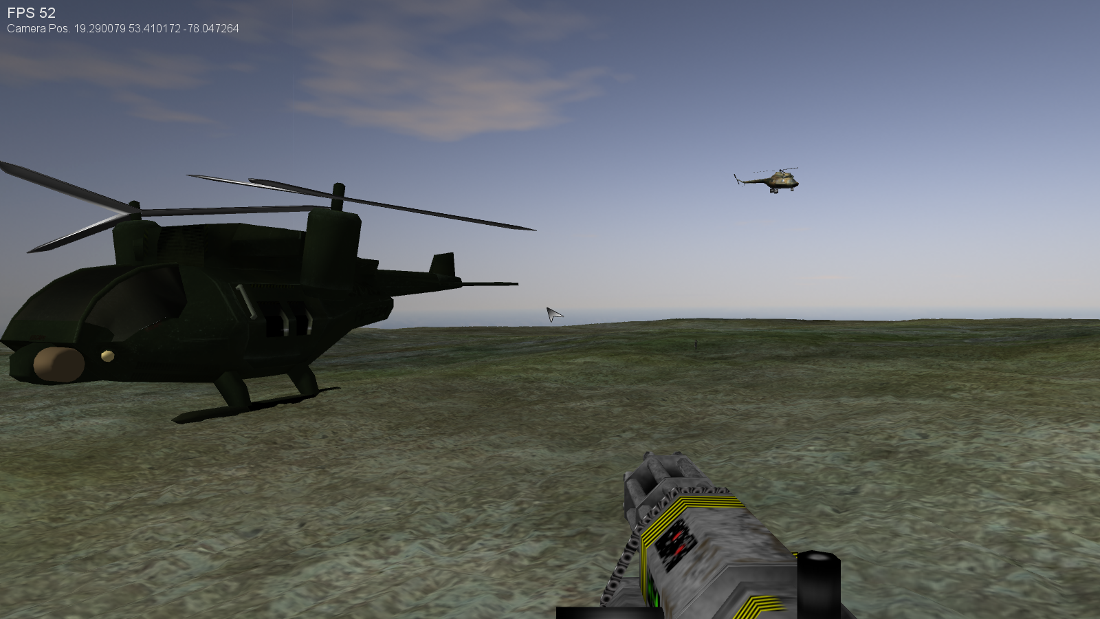 Die engine ist Directx11 basiert, auf den Screenshots sieht man Quadtree Heightfield, Spriteanimation beim schießen und Testmodelle(von Blendswap), die mithilfe von Assimp in ein eigenes Format konvertiert wurden und weitere Standardsachen wie Skybox.