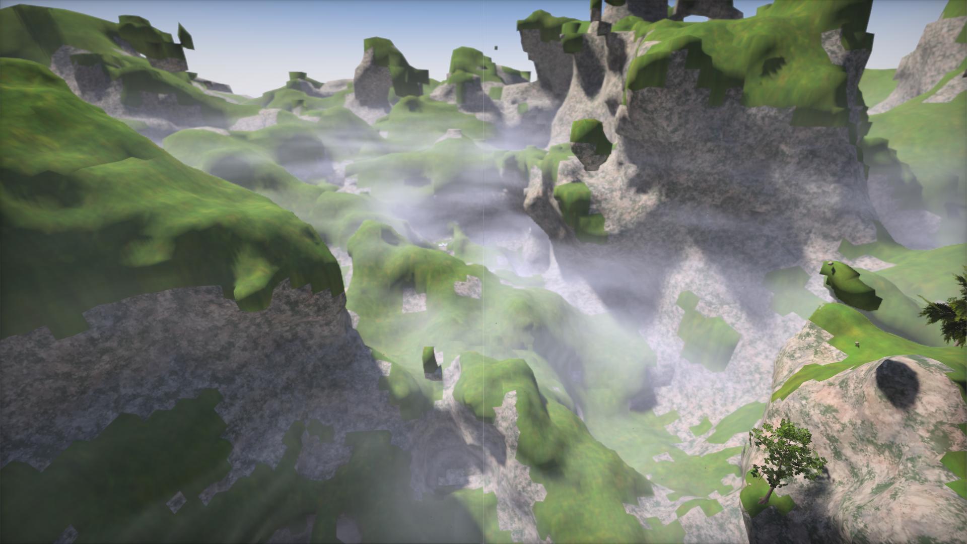 Nach der Vegetation dachte ich, du würdest einem realistischen Grafikstil folgen, und da passt so eine Art von Disney-Nebel IMHO halt nicht rein. Aber ist natürlich deine Sache.