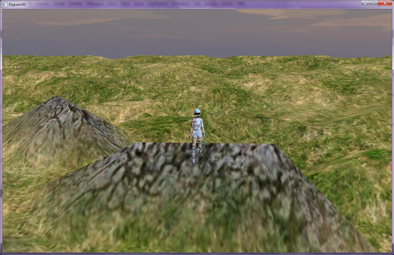 So, meine Engine kommt voran. Jetzt kann man auch ein sehr schlichtes Terrain mit Multitexturing (sieht man nicht so gut, klappt aber) rendern, ein 3rd-Person-Objekte über eine eigene Kamera darüber bewegen. Rotierte und bone-animierte Kollisionsabfrage ist mittlerweile auch fertig gestellt; jedenfalls für BoundingSpheres, das gleiche werde ich auf kurz oder lang auch noch für BoundingBoxen einstellen. Denn BoundingBoxen bieten sich für eine Vielzahl an Objekten einfach eher an. Selbst wenn ich mit einer Kugel nur 3 Vertices einschließe, ist das ohne Dreiecksvergleich bei senkrechten Flächen noch enorm ungenau. In der Engine selbst kann man dann das jeweilige Bounding-Objekt beliebig zuweisen, z.B. so: