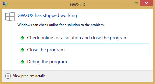 Jetzt stürzt dieses beschissene GWXUX sogar zweimal direkt nacheinander ab. JEDESMAL WENN ICH MICH ANMELDE!