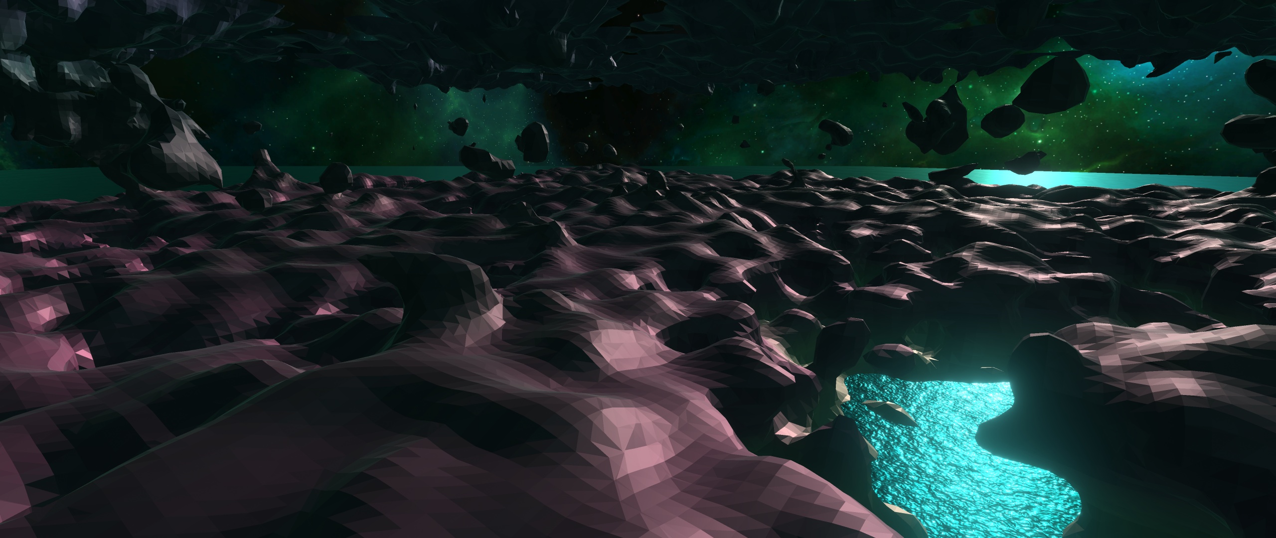 Was mich ein wenig gestört hatte bei den Höhlensystemen, war die inkorrekte Beleuchtung. Über Shadowmaps war alles viel zu hart, speziell über grosse Distanzen. Aussderdem war mir der Performancepenalty zu gross. Also habe ich mir überlegt Ambient Occlusion in die Vertexcolors mit reinzubaken.