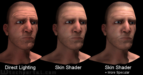Das passiert im Screen Space. Sogar direkt im Shader des Modells! Da wir einen LightPrePass benutzen, haben wir zu dem Zeitpunkt wo wir unsere Haut darstellen möchten schon alle Lichtinformationen in einer Textur. Das hatte auch den Vorteil, dass wir gar nichts am Engine-Code ändern mussten um den Effekt zu bekommen ;)