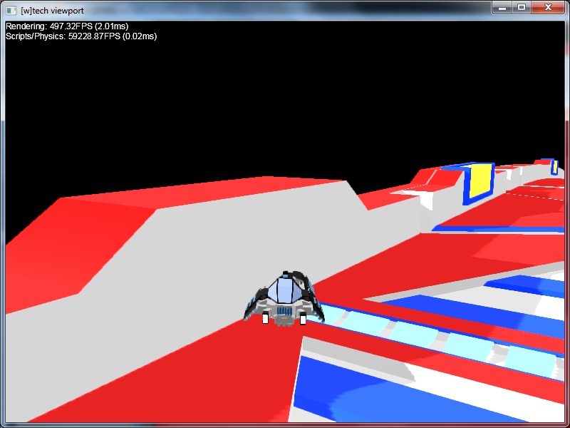 Im Moment ist das Schiff als Raycast-Vehicle umgesetzt. Dh. es gibt einige unsichtbare Federn unten drunter, die es oben halten. Das funktioniert soweit auch gar nicht schlecht, es gibt eben nur diese Probleme, wenn man etwas schneller fahren möchte. Dann fällt man durch den Boden, steckt in den Wänden bzw. fliegt durch, oder wird sonstwo hin geschleudert.