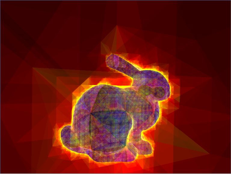 (Anm.: Es funktioniert mit ape nur bedingt, aber fast so wie ich mir das vorgestellt hab und der zusatzaufwand ist fast immer sehr gering; in ape kann man leider nicht rausfinden, wann ein Strahl aus einem Objekt austreten würde, was auf Grund der Volumenforderung hier kein Problem wäre. Für Objekte, die nah beieinander liegen funktionierte das aber in ape auch schon recht gut, auf Wunsch hätte ich da n Screenshot zu.)