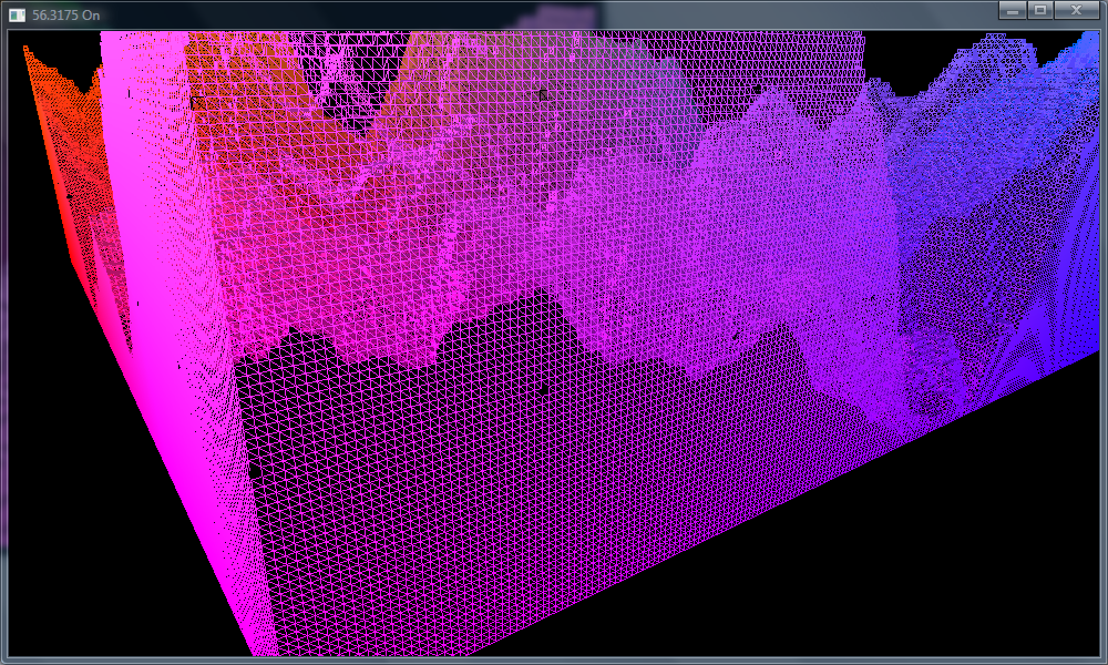Zum Vergleich: Die gleiche Map als Heightmap als normale Heightmap per Geometryshader und jeweils 4 Dreiecken pro Heightmap-Punkt rendert meine Grafikkarte auf 300fps. Und Minecraft im Vergleich läuft mit Standardrendering ohne Geometryshader auf konstant 90fps und da wird nicht nur allein gerendert.