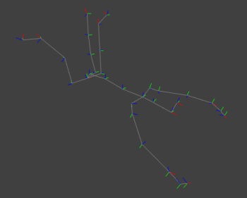 Ein Skelett besteht aus Bones. Jeder Bone, bis auf den ersten, hat einen Eltern-Knochen. Zudem besitzt jeder Knochen eine Transformationsmatrix (Rotation und Translation), die ihn im Koordinatensystem seines Eltern-Knochens positioniert. Wenn ich das anzeige bekomme ich auch das erwartete Ergebnis.