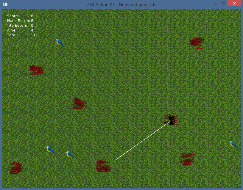 Noch so 'n Ding mit richtig geiler Pixeloptik! Noch dazu ein sauberes Gameplay und 'ne absurd alberne Themeninterpretation und technologisch was ganz Neues. :D Extrem gelungener ZFX-Action-Einstand von dir! Hoffe du bist das nächste mal wieder mit dabei...
