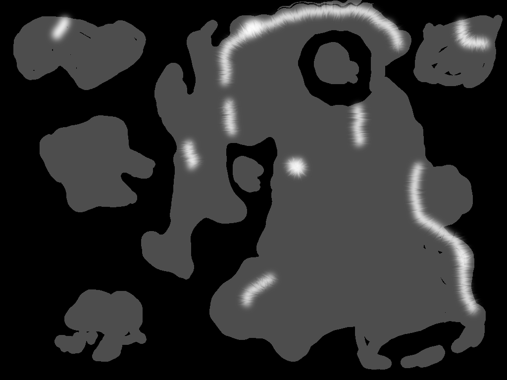Erster Schritt wäre mal aus deiner gemalten Map ein Bild zu machen mit dem man wirklich arbeiten kann. Das bauen wir dann nach und nach auf eine Heightmap um. Und das bedeutet dass zum Beispiel das Wasser einfarbig sein sollte. Am Besten Schwarz weil es am tiefsten liegt. Was es hier grade tierisch schwierig macht ist dass das Bild in grossen Bereichen so krieselig ist. Das stört.