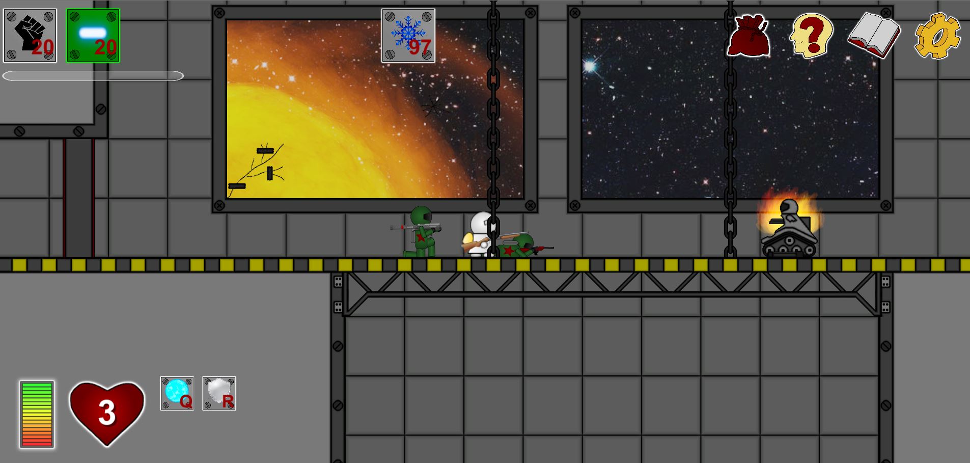Jedes Level besitzt ein einzigartiges Objekt. Eine Waffe, Fähigkeit oder Upgrade die es sonst nirgends zu finden gibt. Hierdurch wird der Abschluss schwierigerer Level ermöglicht. Der Flammenwerfer hilft Beispielweise auf Eisplaneten da die Gegner dort nur eine geringe Feuerresistenz besitzen. Auf Lavaplaneten hingegen ist der Flammenwerfer wenig nützlich. Der panzerbrechende Laser ist gegen gepanzerte Gegner oder Energieschilde zwar ziemlich nützlich versagt jedoch gegen Schwarmgegner. Das Munitionssystem verhindert, dass der Spieler seine ganze Hoffnung auf eine einzige Waffe setzen kann. Ist die Munition leer so muss die Waffe gewechselt werden. Anfangswaffen generieren langsam selbständig Munition über Zeit um zu verhindern, dass der Spieler aufgrund mangelnder Munition steckenbleibt und frustriert ist. Es wird lediglich schwerer für ihn.