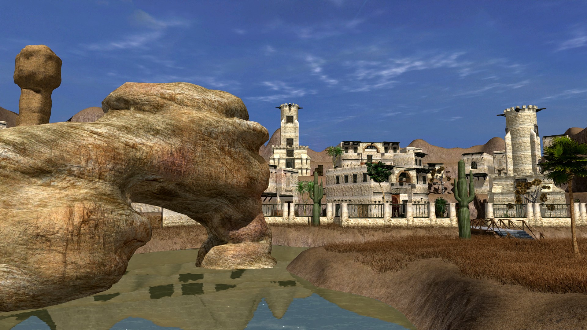 Die Locations werden linear durchlaufen. Hier seht ihr eine kleine Wüstenstadt die der Spieler zu durchlaufen hat.