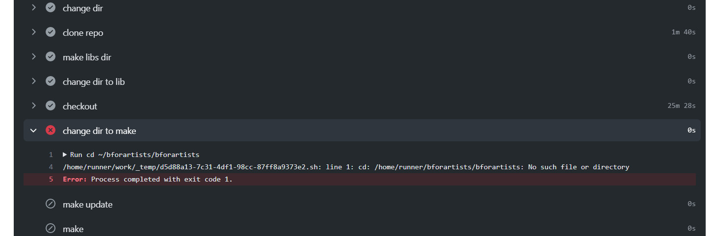 Und somit kann ich das mit Actions eigentlich vergessen. Ich kriege meine Libs nicht auf den Platz wo sie hingehören: ich kann noch nicht mal checken ob sie nicht doch am Platz sind, weil cd nix macht. Du bist und bleibst auf Bforartists/Bforartists :/