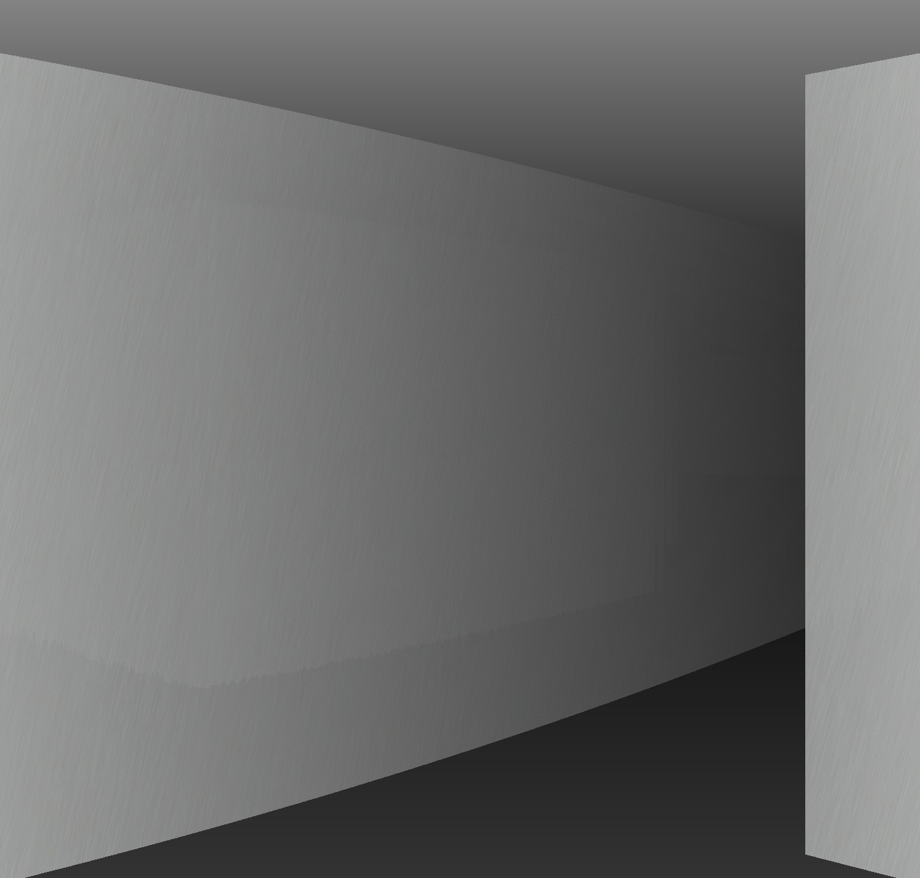 Dank Core Profile und damit Shadern konnte ich jetzt wieder -- zumindest für die Wände -- ein wenig Ambient Occlusion hinzufügen. Vorher hatte ich es mal mit mehreren vertikalen Liniensegmenten, die exponentiell zu Decke/Boden hin kürzer wurden, über die lineare Interpolation von GL angenähert. Allerdings steigt so die Anzahl der Segmente gewaltig, da jede vertikale zur GPU geschickt wird und auch nicht so einfach statisch im VBO bleiben kann.