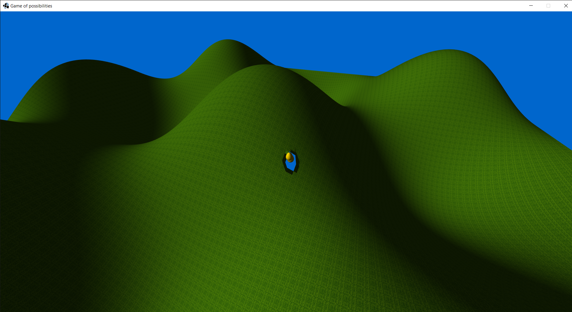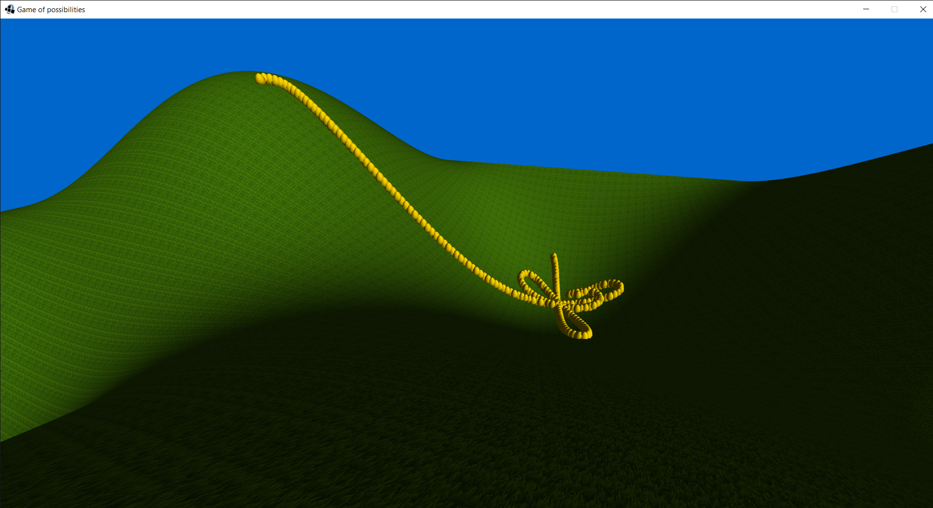 Noch verändert sich das Relief aber nicht, es werden lediglich gelbe Eier erzeugt, die den Weg der Tropfen darstellen.
