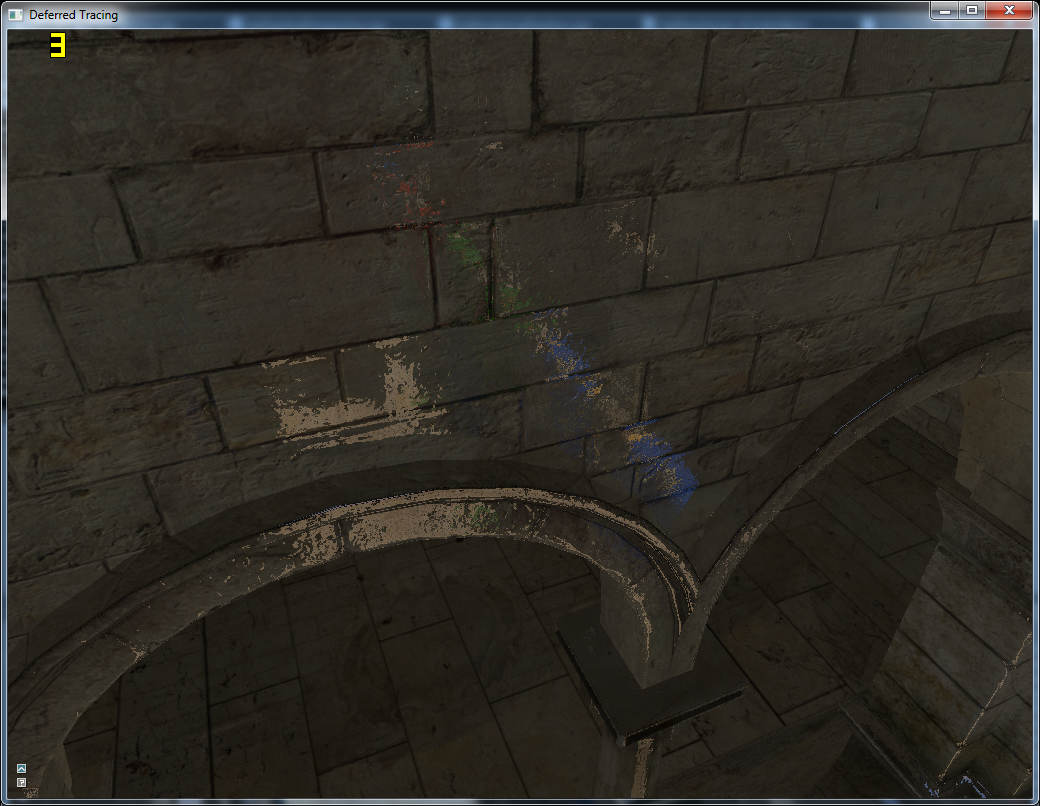 Der ein oder andere fragt sich jetzt vielleicht noch: Warum das Ganze? Es gibt in der Tat bereits wesentlich schnellere Ray-Tracing-Implementierungen auf der GPU, die von Geometrie-Bäumen oder auch Geometrie-Gittern Gebrauch machen. Diese erfordern jedoch meines Wissens nach alle wahlfreien Zugriff auf die gesamte Szenengeometrie und lassen sich somit nur schwerlich in aktuelle Real-time Rendering Pipelines integrieren. Obendrein geht damit der Bedarf eines wahlfreien Zugriffs auf Materialien und insbesondere Texturen einher. Das Verfahren, das ich hier konstruiere, ist direkt in eine ganz normale Deferred Shading Rendering Pipeline integriert, ohne globale Puffer für die Szenengeometrie und unter Verwendung eines ganz normale Objekt- bzw. Batch-basierten Objekt- und Materialsystems.