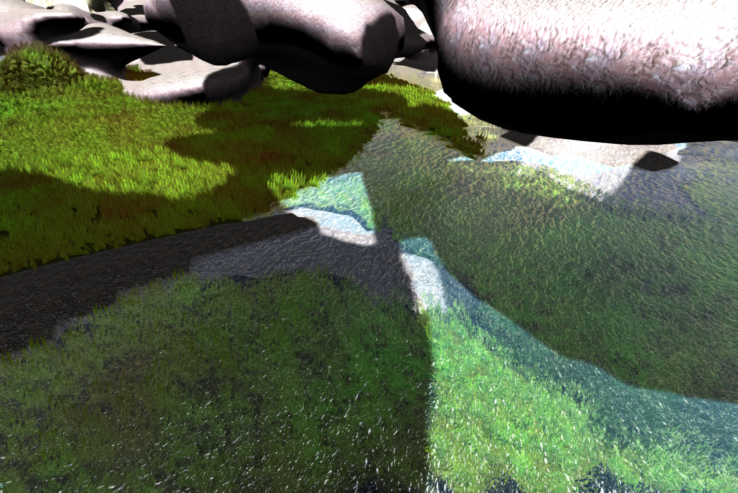 Ich bin noch nicht vollends zufrieden mit unserem Gras. Es ist mMn sehr gut für mittlere LOD-Stufen geeignet, also die Bereiche, wo man Silhouetten braucht und Bewegung sieht, aber man noch nicht super nah dran ist.
