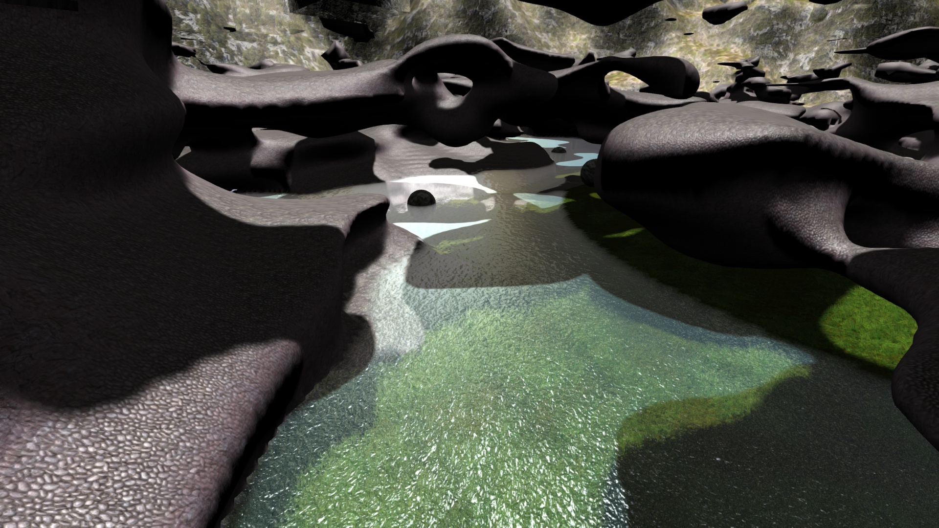 Hab mal aus Spaß das Wasser wieder eingebaut: (noch nicht simuliert, einfach nur als "translucent terrain material")
