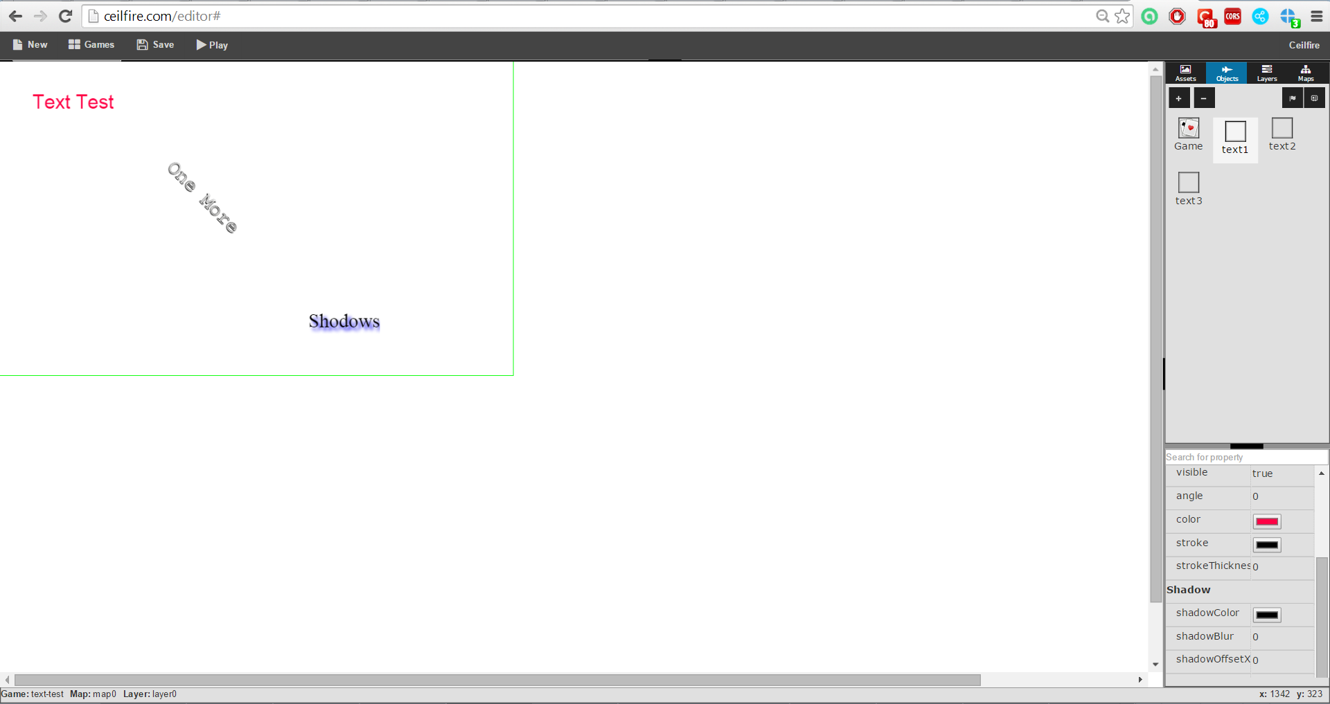 Es gibt jetzt ein Text-Objekt. Bisher wurden Texte in Bilder gespeichert. Jetzt gibt es extra ein Spieleobjekt "Text" mit vielen Eigenschaften wie Font-Family, Größe, Schatten etc.