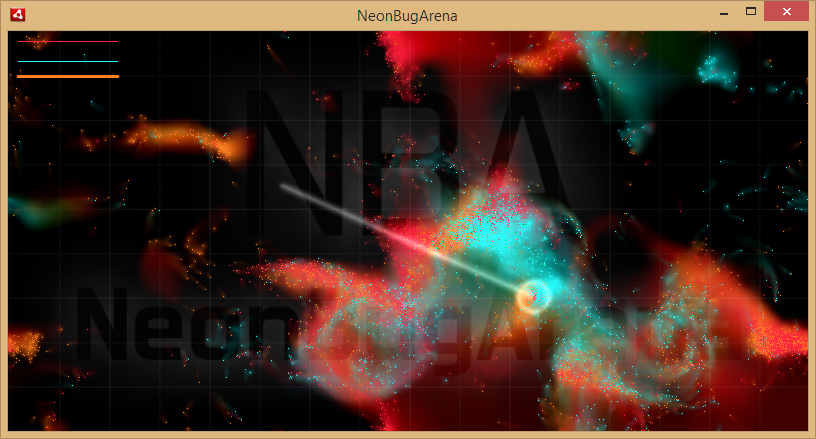 Rot=Spieler, in die Menge klicken und ziehen um eine Gruppe Neon-Bugs zu einem Ziel zu schicken.