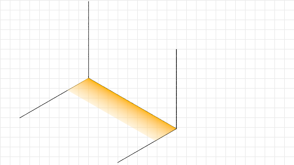 Man sieht hier alle Quads mit sauberen Kanten, aber die spitze Ecke des Dreiecks... nuja... eigentlich macht das Parallelogramm genau das, was es tun soll. Aber weil die affine Basis so hart geschert ist, hat's mir halt auch den Verlauf der Gradienten geschert. Und damit ist der Gradient jetzt drastisch enger, sobald man sich der Ecke nähert.