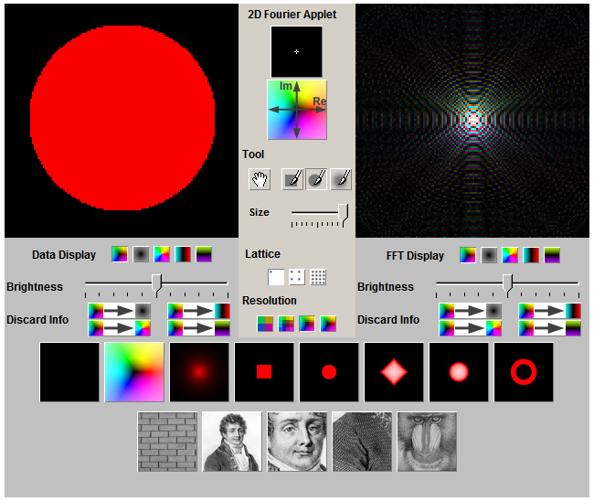 Die FFT einer Kreisfläche erzeugt immer ein Balkenmuster (begründet durch die Diskrete Abtastung). Bild:(Applet) Antialiasing dämpft es minimal, Unschärfe sogar noch mehr, aber so lange die Kreisfläche nicht mit einem riesigen Gauss geglättet ist gibt es immer Balken. Sie werden erst erträglich schwach, wenn die Kreisfläche schön klein ist (im Durchmesser kleiner als die Hälfte des FFT-Durchmessers) – aber dann wird eben das Ringing immer stärker und der Punkt immer unschärfer.
