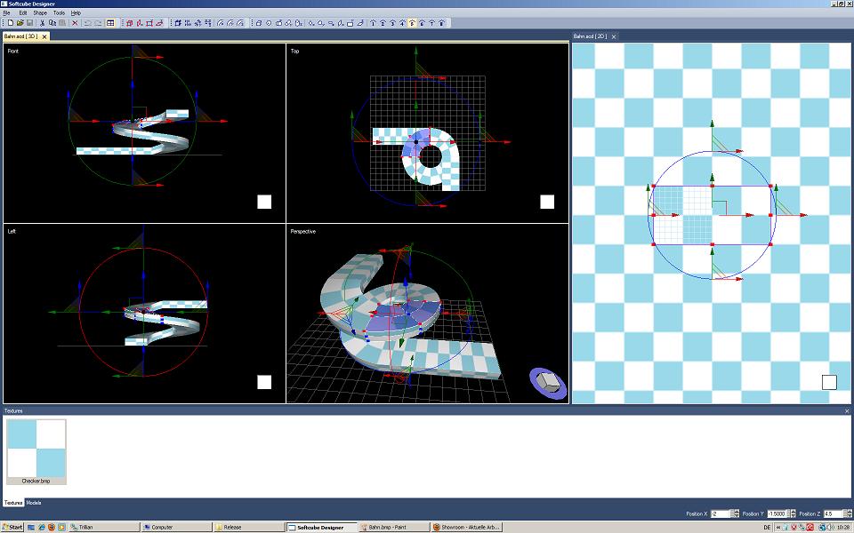 möchte auch mein Projekt "Softcube Designer" vorstellen. Dabei handelt es sich um einen Editor für 3D Welten ( wie immer ). Dabei werden alle Objekte aus biegbaren Würfeln (den Softcubes) erstellt. Außerdem lassen sich auch die Texturekoordinaten editieren. Die Bedienung ist sehr einfach und man kann auch mit wenig künstlerischen Fähigkeiten etwas modellieren. Vieles geschieht mit Drag&Drop. Ich habe auch ein paar screenshots gemacht: