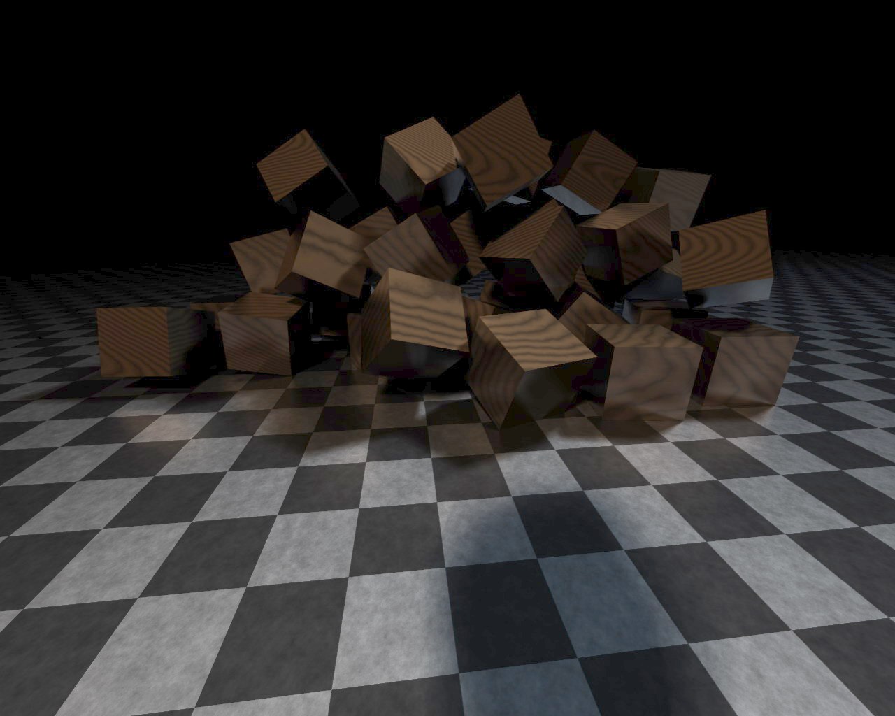 Dies war mein erster Raytracer, der konnte nur Kugeln und Ebenen. Soft Shadows, Antialiasing, DoF, prozedurales 3d Holz, Reflections/Refractions und schließlich Motion Blur.