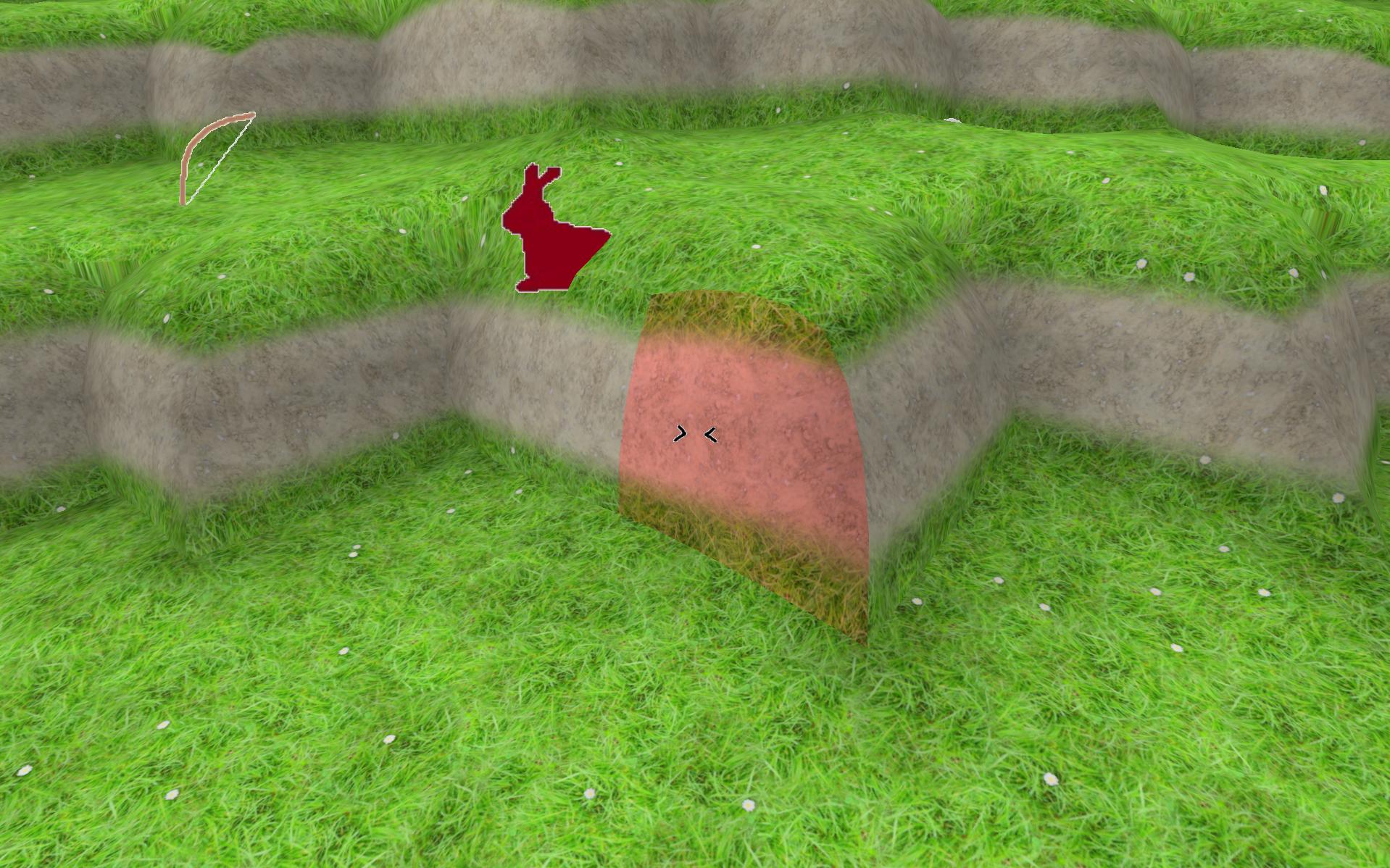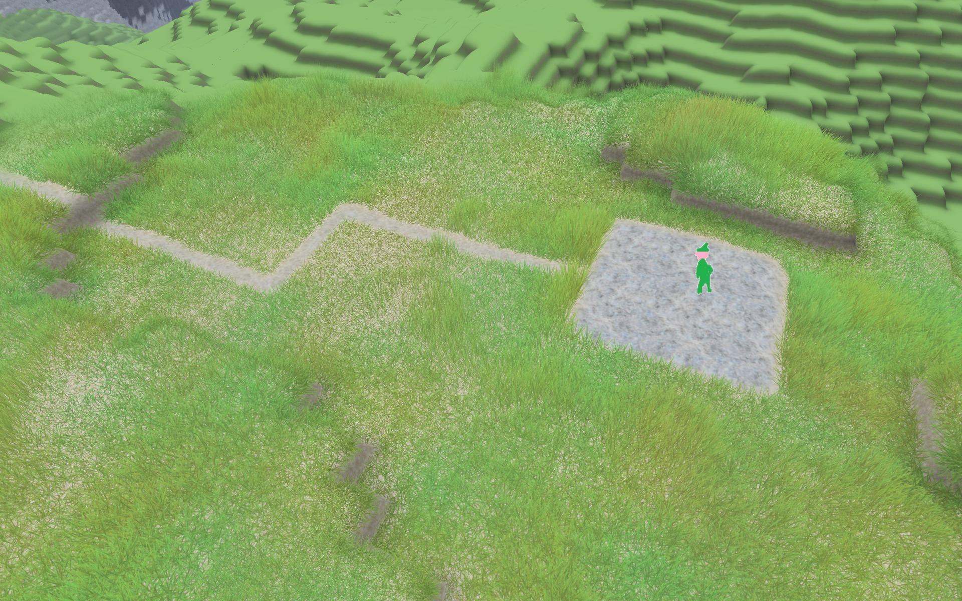 - Gras wächst nur noch auf der Oberseite von Erdblöcken (dadurch sind nun schmale Wege im Gras zu sehen)