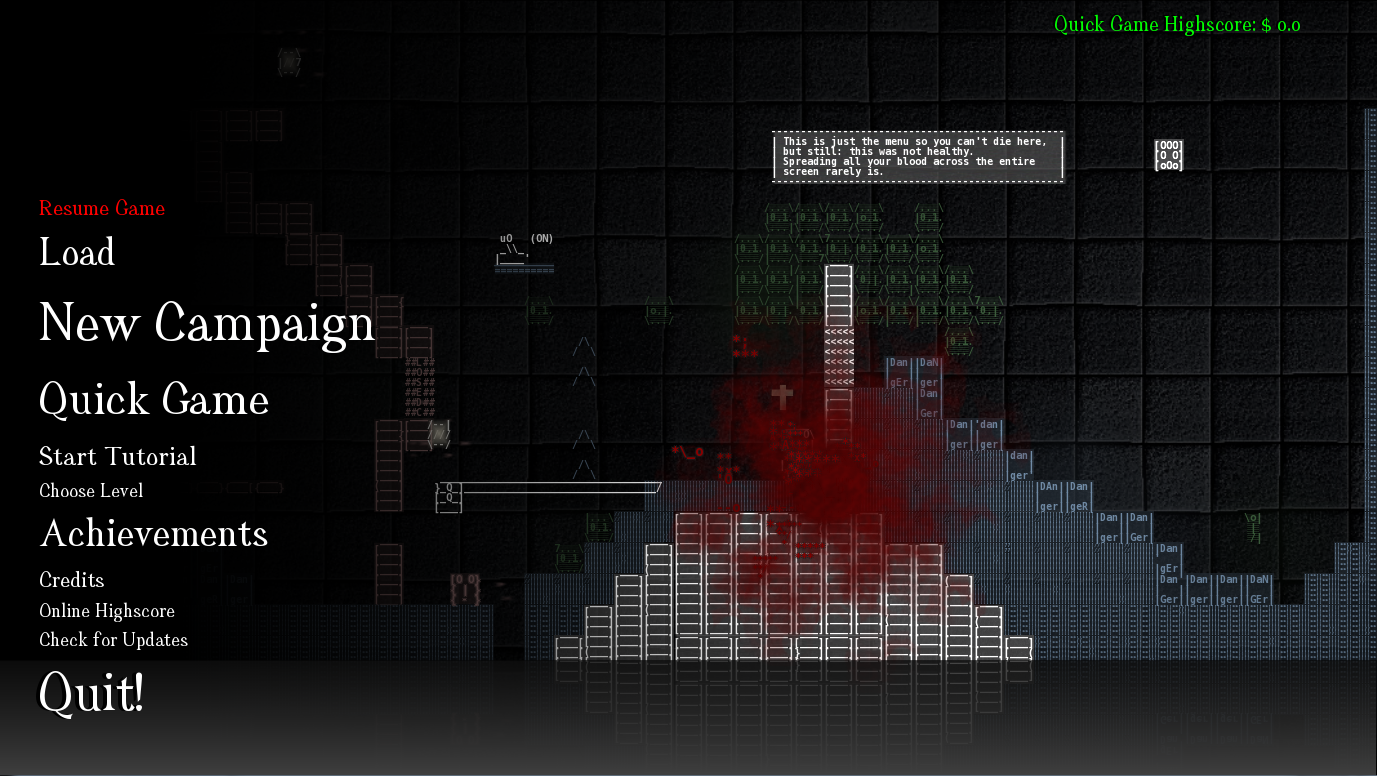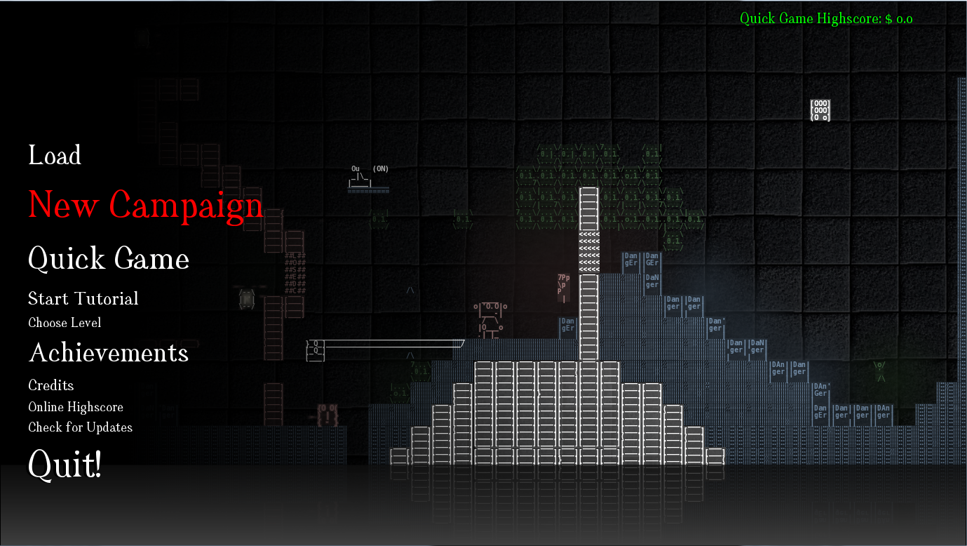 Ich finde den Grafikstil übrigens toll. Ich habe kein Problem damit, weder mit dem ASCII-Set oder noch mit der inkonsequenten Umsetzung davon. Im Gegenteil: ich finde es prima, dass Du nicht stoisch an irgendwelchen Retro-Zielen hängst, sondern für den Look auch einiges investierst. Prima!