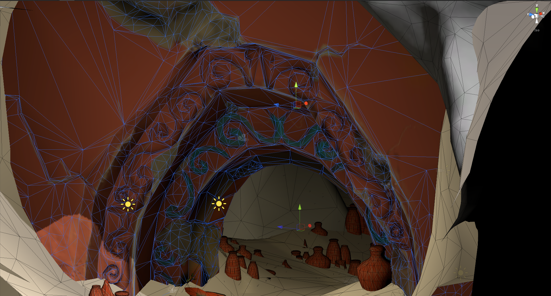Die Dinger haben mich eh jeck gemacht. Mein Versuch das heightmapbasierte Unity Terrain Plattformertauglich zu bekommen indem ich die für die Spielmechanik nötigen scharfen Kanten per Meshes ergänze hat so gar nicht hingehauen. Das war ein zweimonatiger Umweg. Inzwischen ist das Gelände meshbasiert. Kost natürlich mehr Zeit das zu modeln und zu unwrappen statt es einfach in Unity zu sculpten.