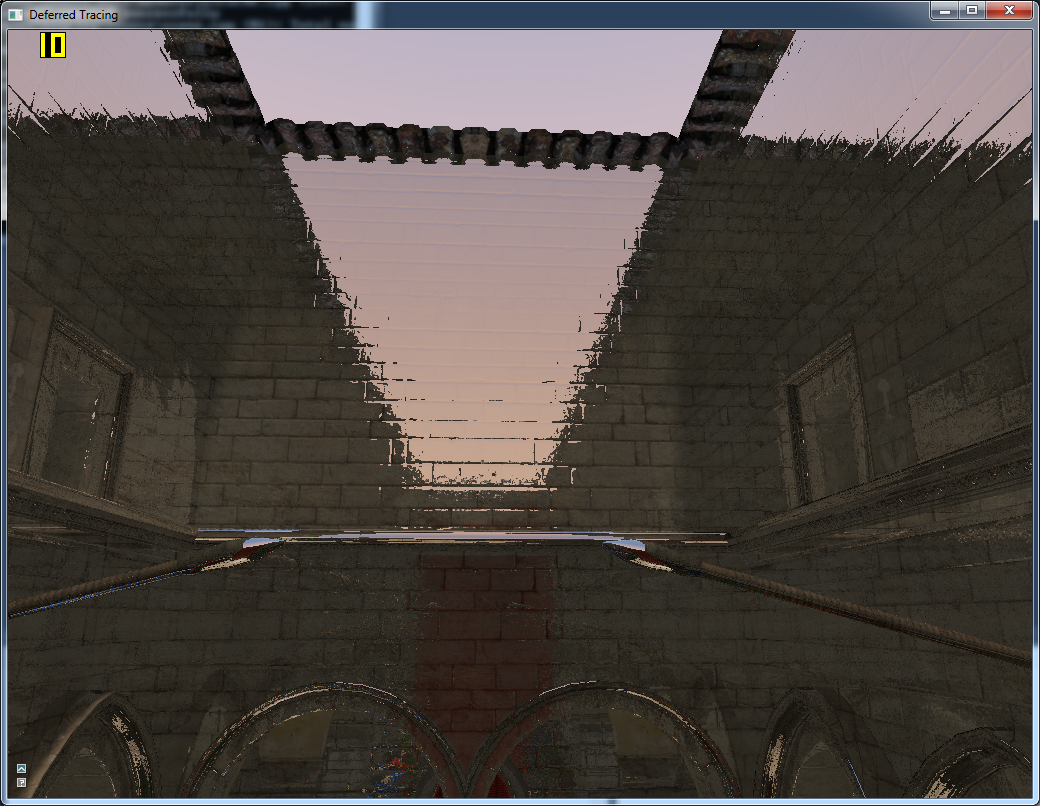 Der ein oder andere fragt sich jetzt vielleicht noch: Warum das Ganze? Es gibt in der Tat bereits wesentlich schnellere Ray-Tracing-Implementierungen auf der GPU, die von Geometrie-Bäumen oder auch Geometrie-Gittern Gebrauch machen. Diese erfordern jedoch meines Wissens nach alle wahlfreien Zugriff auf die gesamte Szenengeometrie und lassen sich somit nur schwerlich in aktuelle Real-time Rendering Pipelines integrieren. Obendrein geht damit der Bedarf eines wahlfreien Zugriffs auf Materialien und insbesondere Texturen einher. Das Verfahren, das ich hier konstruiere, ist direkt in eine ganz normale Deferred Shading Rendering Pipeline integriert, ohne globale Puffer für die Szenengeometrie und unter Verwendung eines ganz normale Objekt- bzw. Batch-basierten Objekt- und Materialsystems.