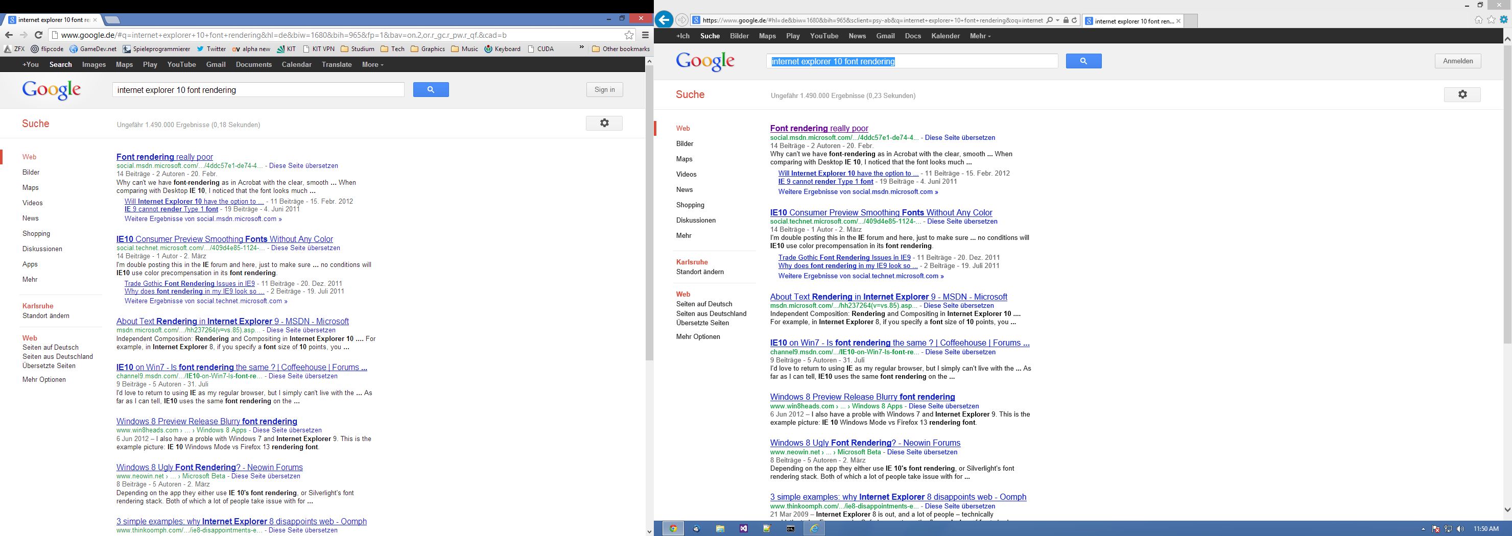 JPEG?! Tatsache. Auf meinem Windows 8 ist eben noch nichts konfiguriert, ich bewege mich jetzt schon wieder unter Windows 7. Wenn ich mal wieder in Windows 8 vorbeischaue, mache ich nochmal ein Bild.eXile hat geschrieben:Can't see shit captain, weil die JPEG-Kompression alles vermanscht.CodingCat hat geschrieben:Was zur Hölle haben sie aus Clear Type gemacht? Ich dachte kurzzeitig, ich wäre über Nacht zum greisen Maulwurf mutiert.