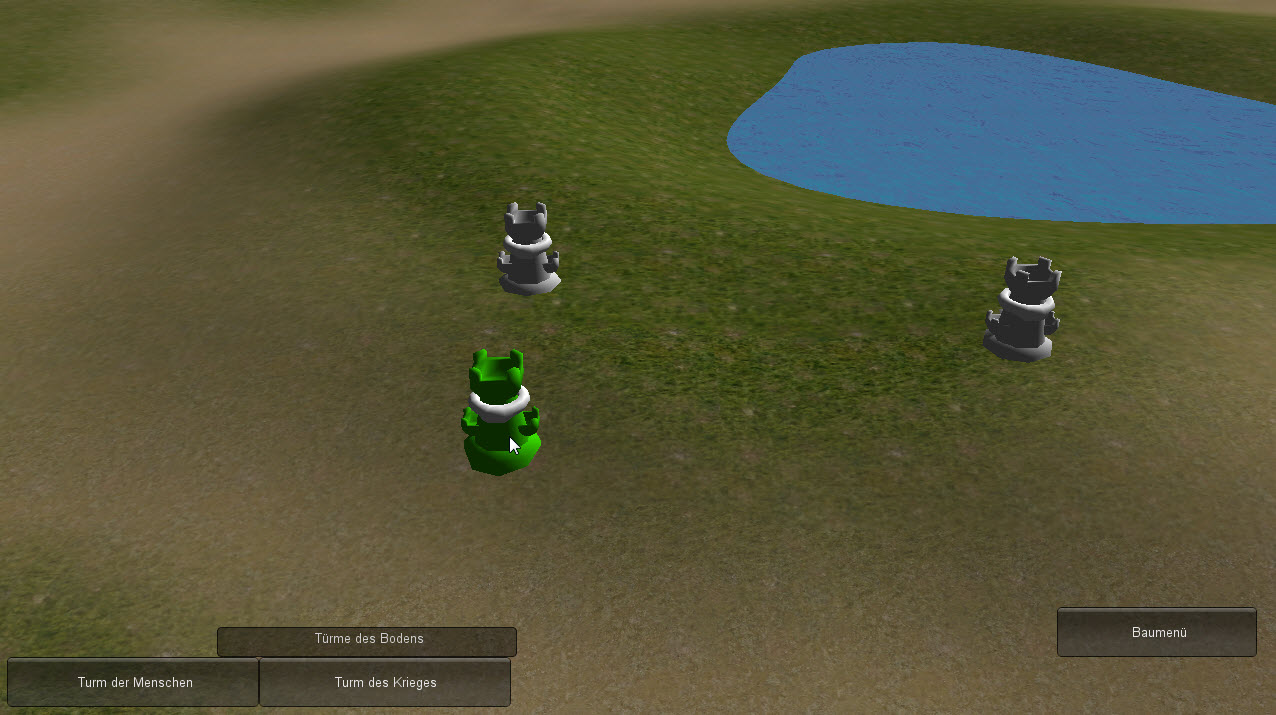Türme können gebaut, selektiert werden und schießen... also mit momentan der ersten Waffe.